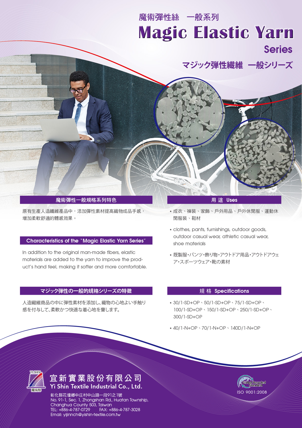 人造繊維商品の中に弾性素材を添加し、織物の心地よい手触り 感を付与して、柔軟かつ快適な着心地を齎します。